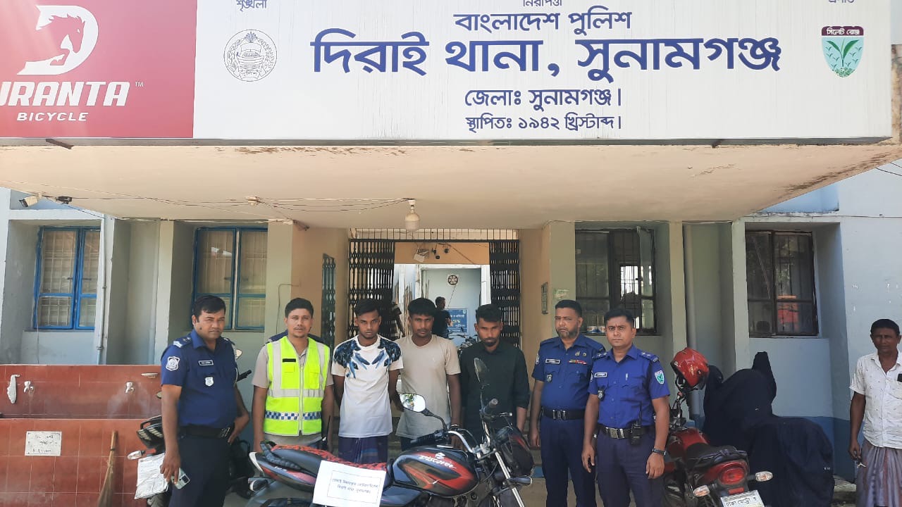 সুনামগঞ্জের দিরাই থানা পুলিশের বিশেষ অভিযানে চোরাই যাওয়া মোটর সাইকেল উদ্ধারসহ মোটর সাইকেল চোরচক্রের সক্রিয় ০৩ সদস্য গ্রেফতার করেছে দিরাই থানা পুলিশের একটি দল।