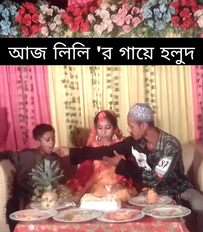 নবীগঞ্জের ইনাতগঞ্জ ইউনিয়নের রমজান পুর গ্রামের বিশিষ্ট সমাজ সেবক মোঃ নজরুল ইসলামের একমাত্র মেয়ে লিলি'র আজ গায়ে হলুদ সন্ধ্যা, সে ধর্ম অনুযায়ী কোরআন পড়া সম্পূর্ণ করে এবং উচ্চ মাধ্যমিক সমমান লেখাপড়া সম্পন্ন করেন। ইসলামের রীতিনীতি মেনে পারিবারিক সিদ্ধান্ত অনুযায়ী আগামীকাল বৃহস্পতিবার ২৪ জুলাই ২০২৫ ইং উনার বাড়ি রমজনপুর গ্রামে বিয়ের অনুষ্ঠানের আয়োজন করেছেন, এতে আত্মীয়-স্বজন বন্ধু-বান্ধব এলাকার সামাজিক ব্যক্তিবর্গ ও স্থানীয় সাংবাদিক পুলিশ প্রশাসন আমন্ত্রিত মেহমান উপস্থিত থাকবেন, বিয়ের কাজ সম্পন্ন হওয়ার পর উপস্থিতি মেহমান ও এলাকার গণ্যমান্য ব্যক্তিবর্গের সম্মুখে নবদম্পতির প্রতির আগামী দিনগুলো যেন সুখ শান্তি সমৃদ্ধ ও শান্তিপূর্ণ সংসার জীবন পরিচালনার মাধ্যমচে সুখে থাকেন, এ কথা বলে কাজী ইমাম সহ জনসম্মুখে দুয়া সম্পূর্ণ করেন।স্বামীর শরণাপন্ন করে দিবেন, লিলি 'র বাবা ও মা,