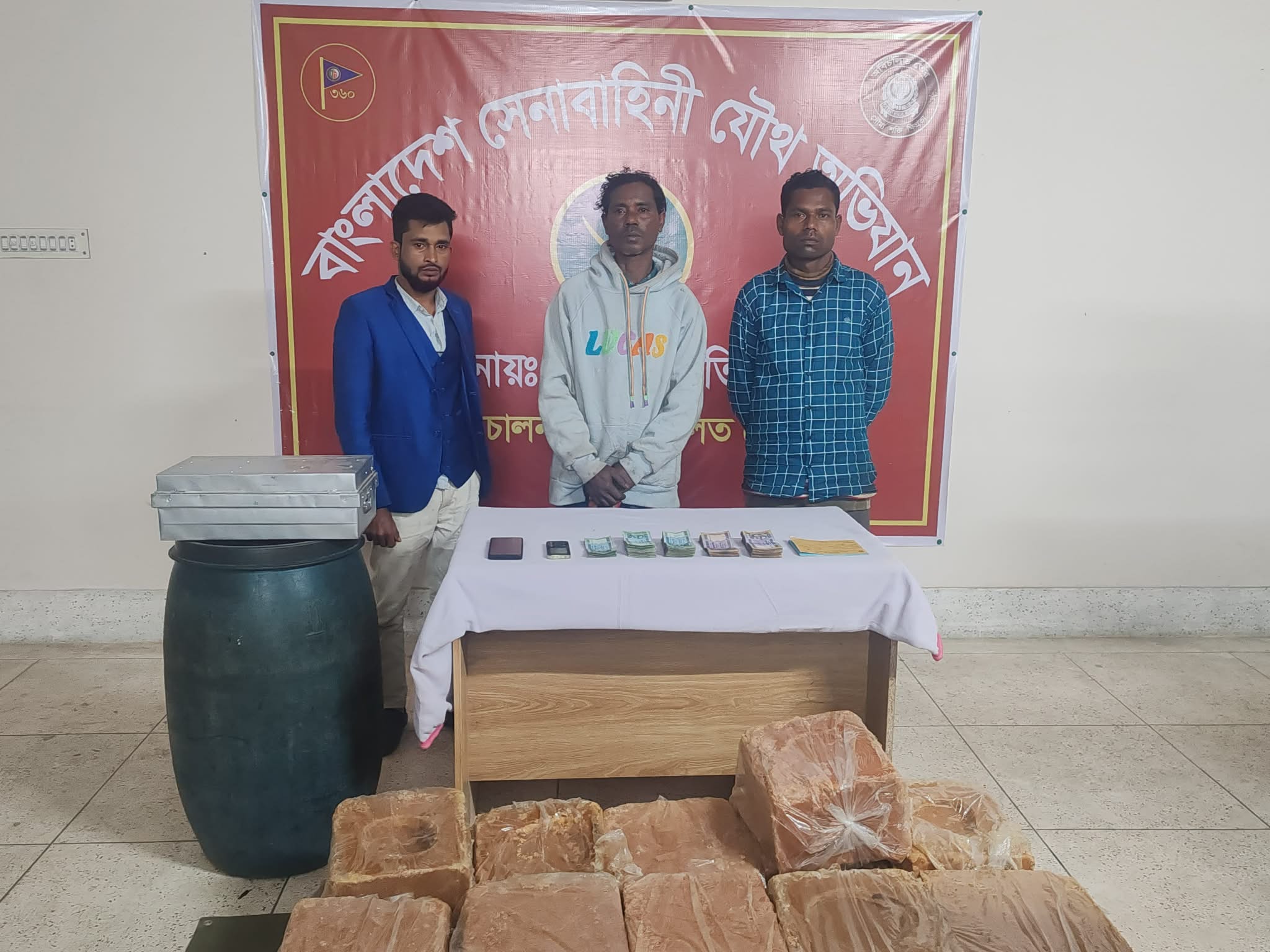 অভিযানে নগদ ২ লাখ ৩০ হাজার টাকা, দেশীয় মদ তৈরির প্রক্রিয়াধীন উপকরণ হিসেবে ২ হাজার ৪০০ লিটার গুড়, ৩৭৮ কেজি মোলাসেস (গুড়) ও দুটি মোবাইল ফোন উদ্ধার করা হয়। প্রক্রিয়াধীন দেশীয় মদ ঘটনাস্থলেই ধ্বংস করা হয়। উদ্ধারকৃত মালামাল ও আটককৃতদের চুনারুঘাট থানা পুলিশের কাছে হস্তান্তর করা হয়েছে।এদিকে চেকপোস্ট ও মদ উদ্ধার অভিযান শেষে ফেরার পথে সেনা টহল দল দেওরগাছ এলাকায় মো. ইসহাক ও মো. বায়েজিদ মিয়া নামের দুই ব্যক্তিকে সন্দেহভাজন হিসেবে আটক করে। তাদের কাছ থেকে হাতেনাতে গাঁজা উদ্ধার করা হয়। পরে তাদের বাড়িতে তল্লাশি চালিয়ে মোট ৭ কেজি গাঁজা এবং মাদক সেবনের বিভিন্ন উপকরণ উদ্ধার করা হয়।আটককৃতরা হলেন- দেওরগাছ এলাকার সাঈদ আলীর ছেলে মো. ইসহাক মিয়া (২৫) এবং কবির মিয়ার ছেলে মো. বায়েজিদ মিয়া (৩০)। উদ্ধারকৃত গাঁজাসহ তাদের চুনারুঘাট থানায় হস্তান্তর করা হয়েছে।চুনারুঘাট থানার ভারপ্রাপ্ত কর্মকর্তা (ওসি) মো. শফিকুল ইসলাম ঘটনার সত্যতা নিশ্চিত করে জানান, উদ্ধারকৃত মাদকদ্রব্য ও আটককৃতদের বিরুদ্ধে আইনগত ব্যবস্থা গ্রহণ প্রক্রিয়াধীন রয়েছে।